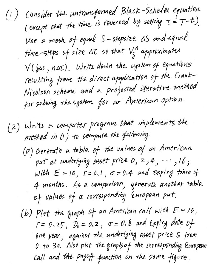 (3)Students will learn numerical methods for solutions to specific classes of PDEs, including those with free boundaries.